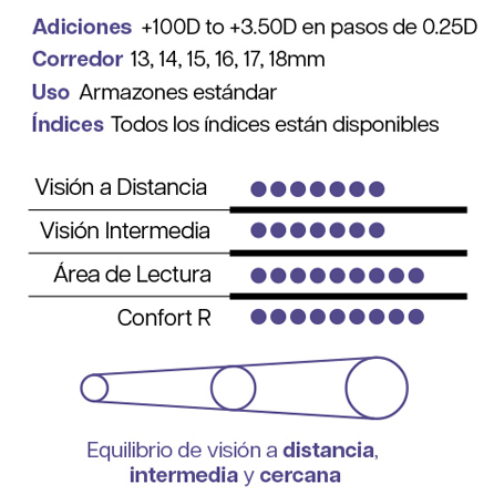 Nuestro diseño más popular acaba de mejorar. El diseño Eidos Precise es un excelente diseño progresivo que proporciona al usuario con una visión sólida en todas sus necesidades visuales. Ideal para quienes requieren un fuerte equilibrio de buena visión a distancia, buena visión intermedia y buena visión de cerca.