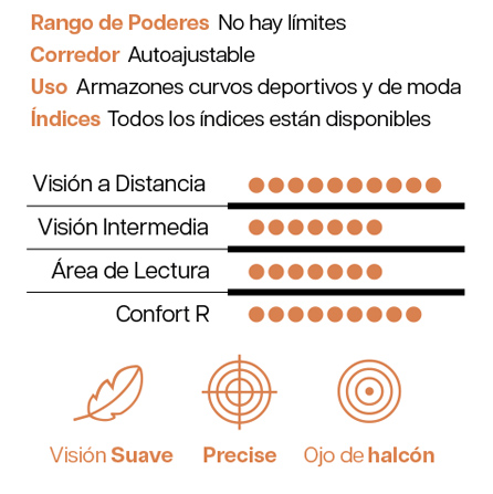 El diseño intrínsecamente natural mejora el LUXURY 4D para proporcionar una excelente comodidad del paciente. El trazado de rayos proporciona una óptica más consistente y óptimo rendimiento en toda la gama de poderes y de prescripción. Áreas de visión más amplias para los pacientes con hipermetropía. Área de distancia mejorada para pacientes con miopía.